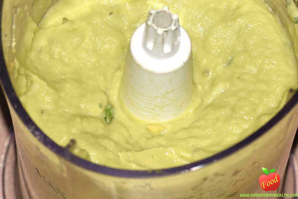 - Place the avocados, lemon juice, parsley, garlic and dried basil in a blender or food processor.